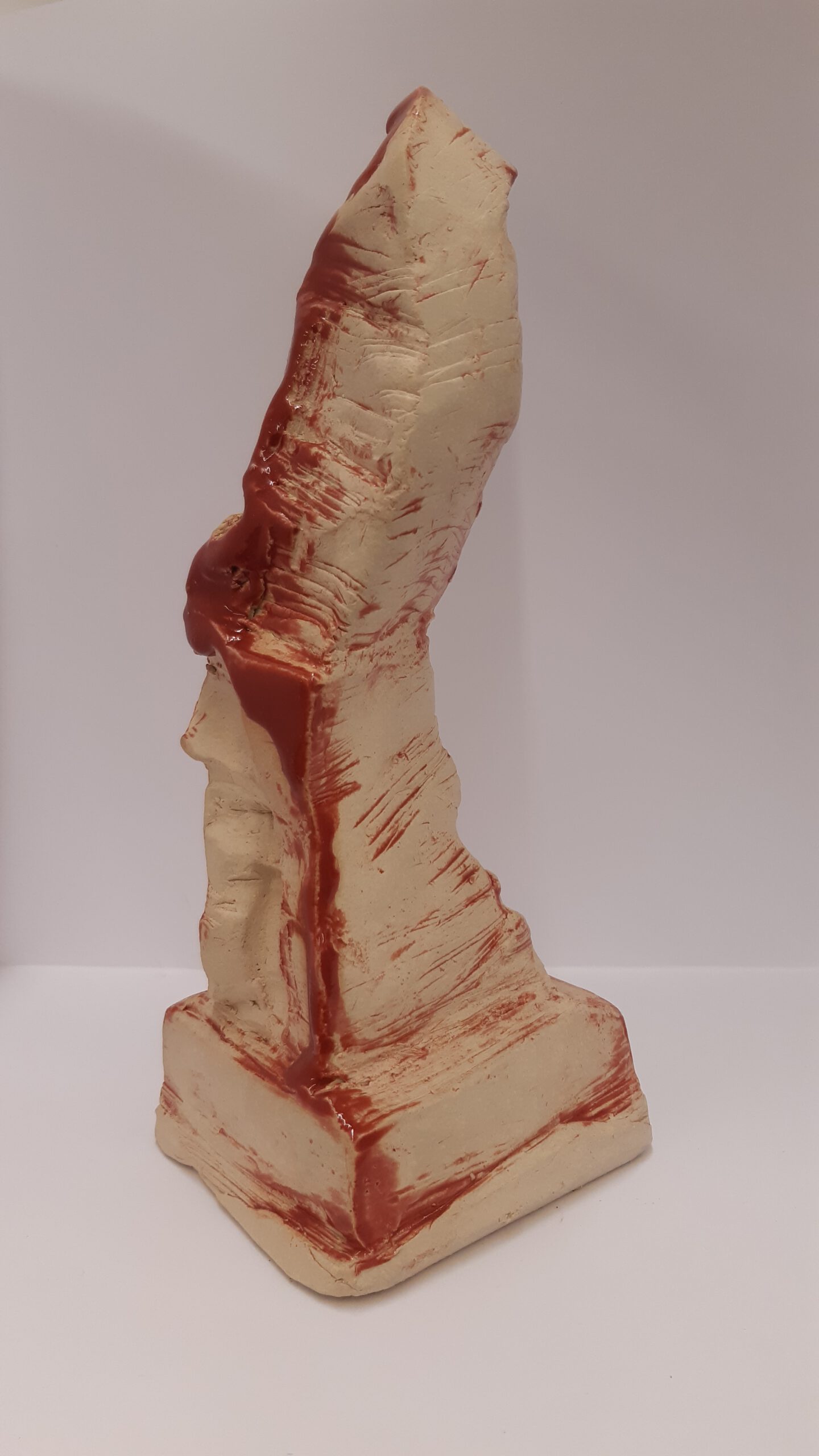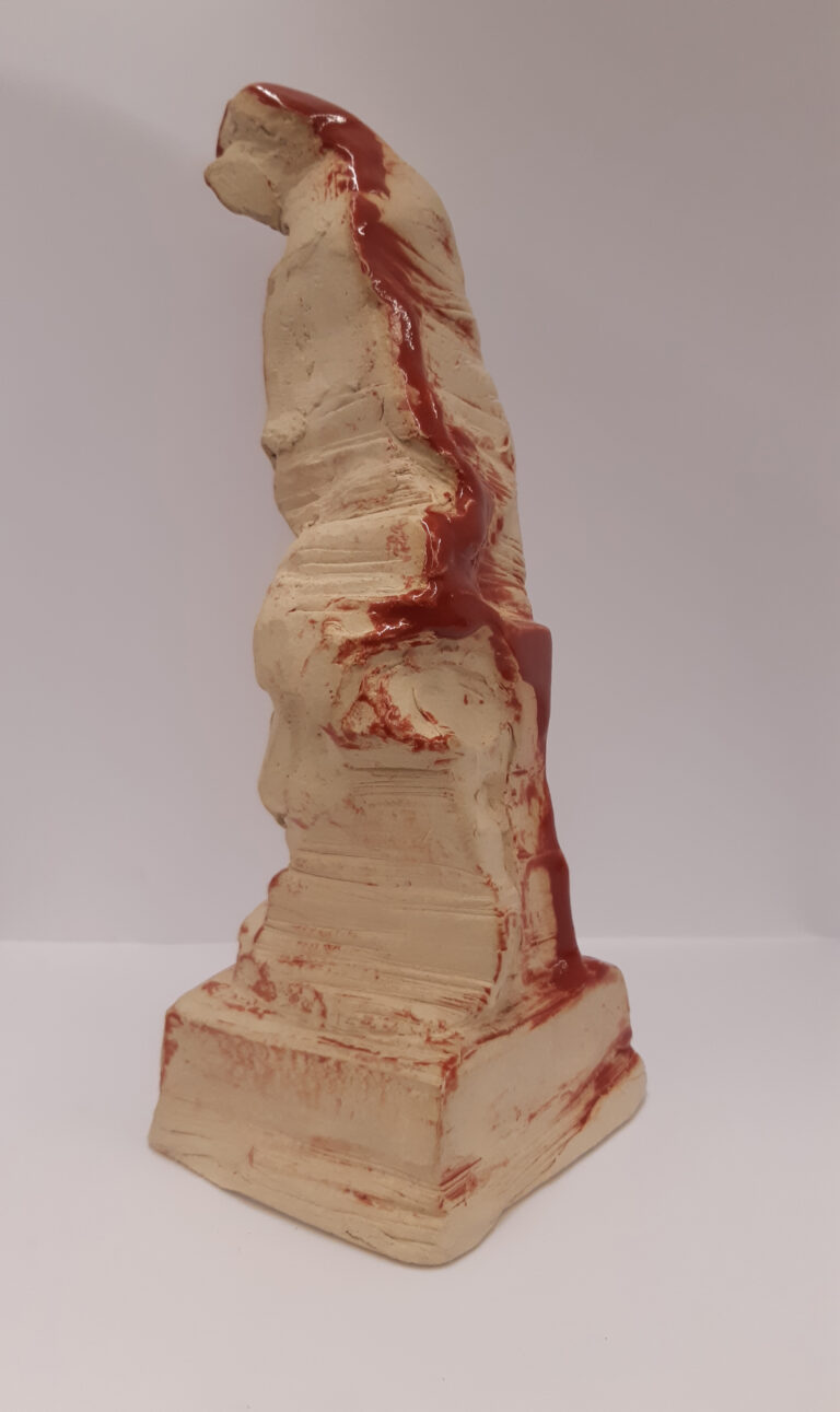 Monument, 2023. 7x9x28cm, Öl Farbe Gold, Ton – Glasur Rot 1280 °C