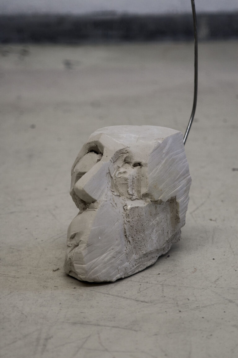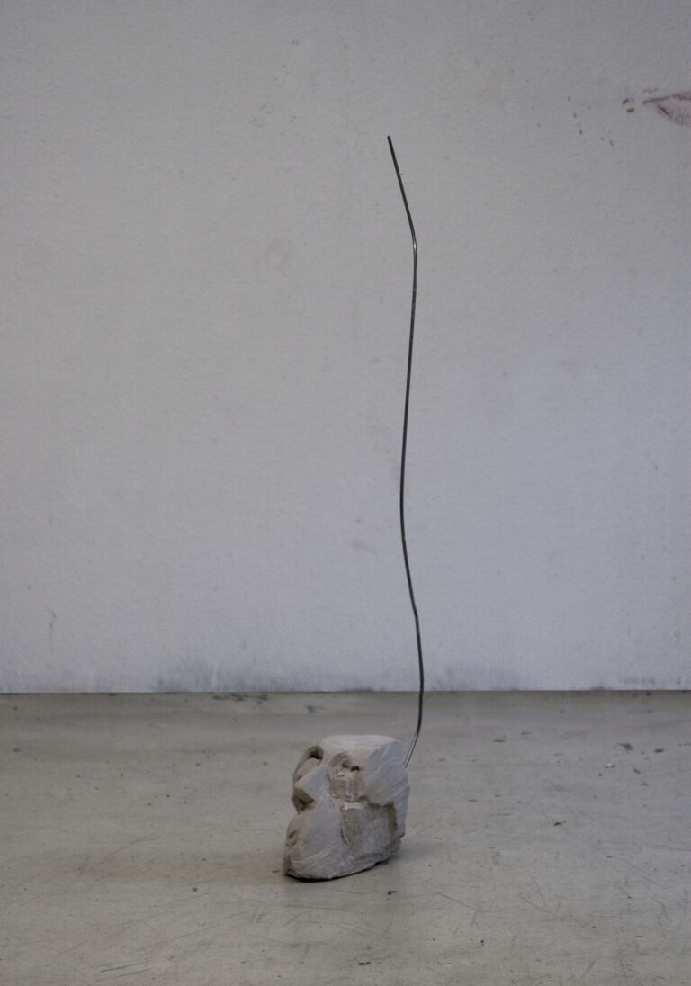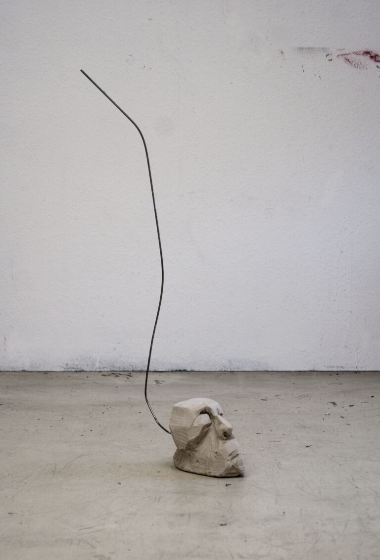 Kopf und Fuß, 2025. Ton, Rundstahl 4mm 7.5 x 20 x 92.5cm
